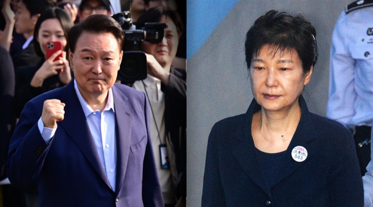 ¡ã2025³â 4¿ù 11ÀÏ À±¼®¿­ Àü ´ëÅë·ÉÀÌ ¿ë»ê±¸ Çѳ²µ¿ ´ëÅë·É °üÀú¸¦ ¶°³ª¸ç ÁöÁöÀÚµéÀ» ÇâÇØ ÁÖ¸ÔÀ» ºÒ²ö Áã¸ç ÀλçÇÏ´Â ¸ð½À°ú 2017³â 5¿ù 23ÀÏ ±¸¼ÓµÈ ¹Ú±ÙÇý Àü ´ëÅë·ÉÀÌ ÀçÆÇ¿¡ Ãâ¼®ÇÏ´Â ¸ð½À. ¨Ï °øµ¿ÃëÀç»çÁø´Ü
