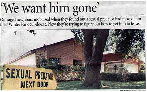 Ç÷θ®´Ù ÁÖ ÀÇȸ´Â Áö³­ 1996³â 7¿ù 1ÀÏ °³Àΰú ÀÚ³àÀÇ ¾ÈÀüÀ» À§ÇØ Ç÷θ®´Ù ÁÖ °ÅÁÖÀÚµéÀÌ ÀÚ½ÅÀÇ Áý ÁÖº¯¿¡ ¼º¹üÁËÀÚ°¡ °ÅÁÖÇÏ´ÂÁö¸¦ È®ÀÎÇÒ ¼ö ÀÖ´Â ±Ç¸®¸¦ ºÎ¿©ÇÏ´Â ¼ÒÀ§ '¸Þ°£¹ý'(Megan's Law)À» Åë°ú½ÃÄ×´Ù.