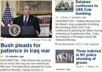 ±×ÀÇ ´äº¯Àº °£´ÜÇÏ´Ù. 2004³â ´ë¼±°úÁ¤¿¡¼­ À̶óÅ©Àü¿¡ ´ëÇÑ ºÎÁ¤ÀûÀÎ »ý°¢À» °®°í ÀÖ´Â Á¤Ä¡Àεé°ú ±¹¹Îµé¿¡°Ô Çß´ø °Í°ú µ¿ÀÏÇÏ°Ô 'Á» ´õ ±â´Ù·Á ´Þ¶ó'´Â °ÍÀÌ´Ù.