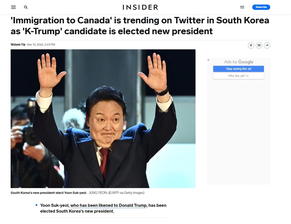 ¡ã 3¿ù 10ÀÏ ¿Â¶óÀÎ ¹Ìµð¾î ȸ»çÀÎ <ÀλçÀÌ´õ>(INSIDER)´Â<'K-Æ®·³ÇÁ' È帰¡ »õ ´ëÅë·ÉÀ¸·Î ´ç¼±µÇ¸é¼ 'ij³ª´Ù À̹Î' À¯Çà Áß>À̶õ ±â»ç¸¦ º¸µµÇß´Ù. ¨Ï INSIDER
