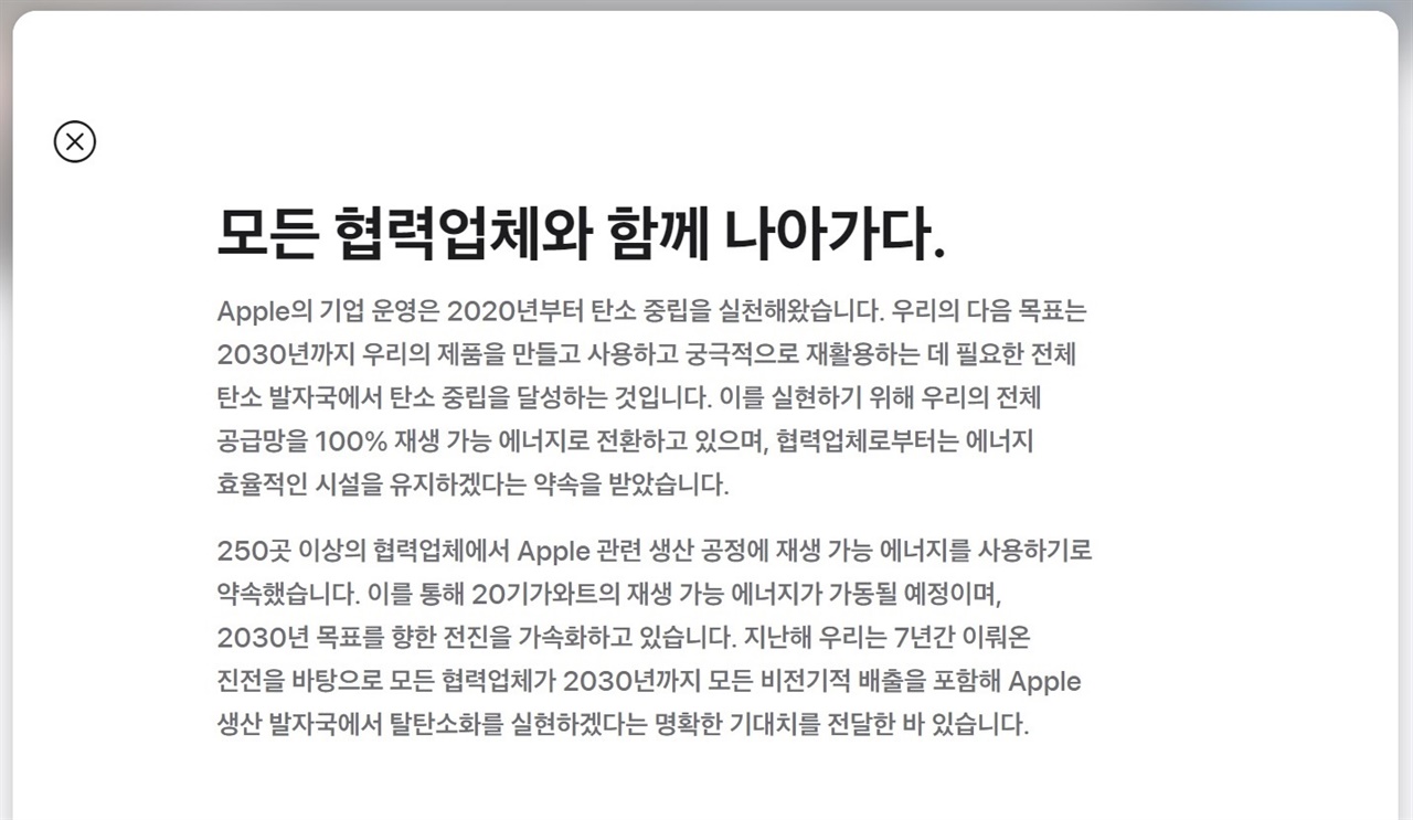 ÀÌ°É 0À¸·Î ¸¸µé°Ú´Ù´Â Àǹ̴ ¾ÖÇÃÀÌ ¹Ì±¹ ÄíÆÛƼ³ë º»»çÀÇ Àü±â¸¸ 100% ûÁ¤ ¿¡³ÊÁö¸¦ »ç¿ëÇϰí, ¾ÆÀÌÆù Á¦Á¶ °úÁ¤¿¡¼ ź¼Ò°¡ ¹ß»ýÇÏÁö ¾Êµµ·Ï Çϰڴٴ Â÷¿øÀ» ³Ñ¾î »ç¿ëµÇ´Â ¸ðµç ºÎǰµµ ź¼Ò¸¦ ¹ß»ý½ÃŰÁö ¾ÊÀº Á¦Ç°À¸·Î »ç¿ëÇϰڴٴ ÀǹÌÀÔ´Ï´Ù.