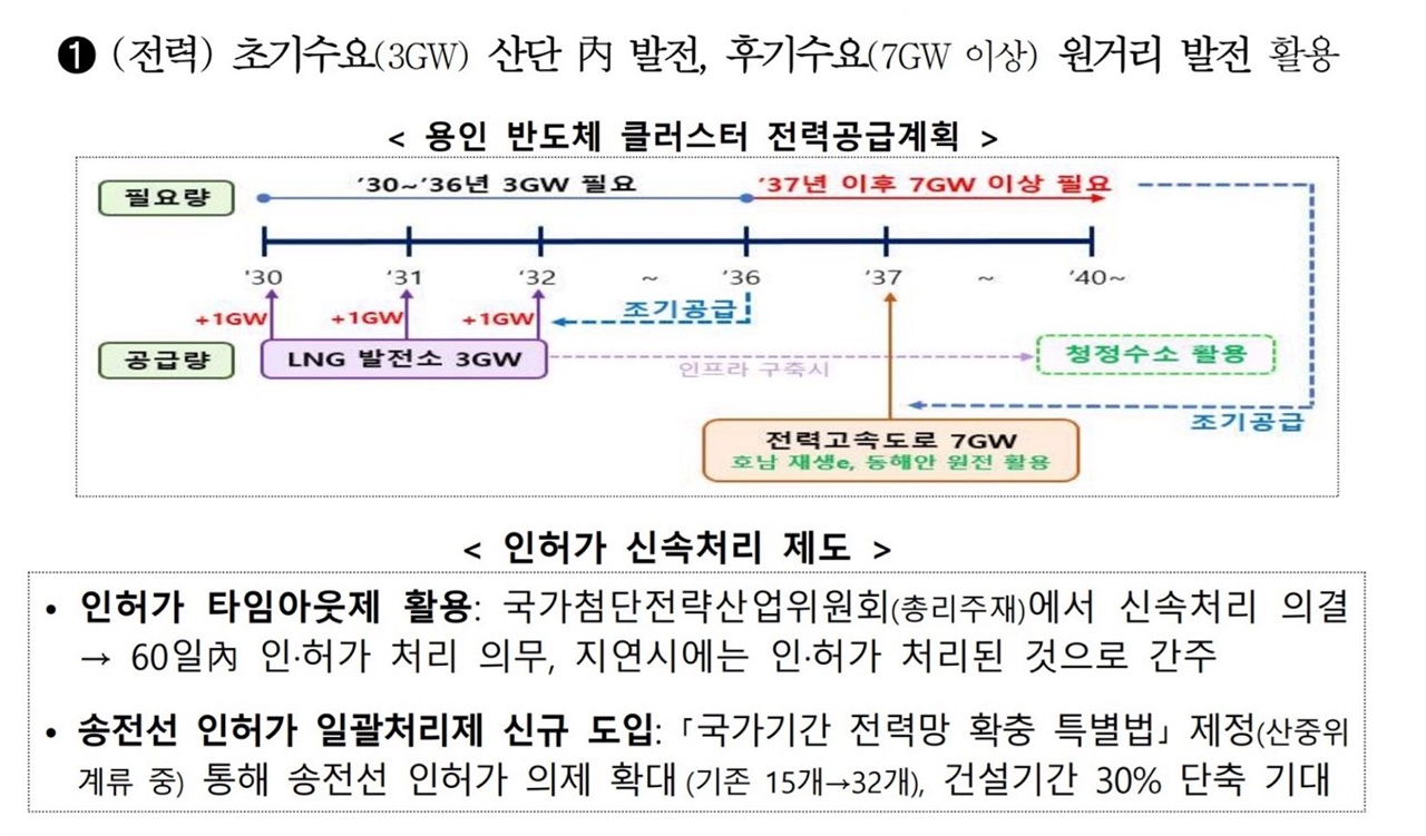 ¹ÝµµÃ¼ Ŭ·¯½ºÅ͸¦ Çΰè·Î ¿øÀü¿¡ ´ëÇÑ ÅõÀÚ¸¦ °è¼ÓÇÏ°Ú´Ù°í ¹àÈù °ÍÀÔ´Ï´Ù. »ê¾÷ºÎÀÇ º¸µµÀÚ·á¿¡µµ "¿ëÀÎ ¹ÝµµÃ¼ Ŭ·¯½ºÅÍ Àü·Â°ø±Þ°èȹ"ÀÌ ³ª¿Í ÀÖ½À´Ï´Ù. ÇâÈÄ ÇÊ¿äÇÑ Àü·ÂÀº 10GWÀε¥, Ãʱâ¼ö¿ä 3GW´Â LNG¹ßÀü¼Ò 6±â¸¦ ¼¼¿ö Ãæ´çÇϰí, ³ª¸ÓÁö 7GW´Â 2037³â ÀÌÈÄ È£³²ÀÇ Àç»ý¿¡³ÊÁö¿Í µ¿ÇؾÈÀÇ ¿øÀüÀ» Ȱ¿ëÇÏ°Ú´Ù°í µÇ¾î ÀÖ½À´Ï´Ù.