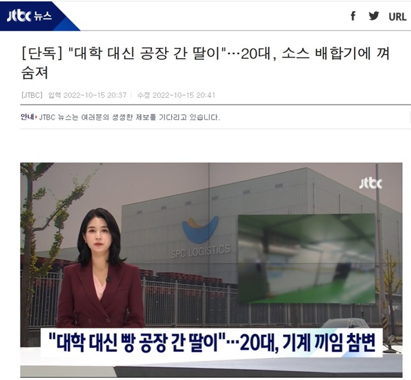 ±×·±µ¥ ±× ¼Ò½ÄÀ» ÀüÇÏ´Â JTBC´Â "´Üµ¶"À̶ó¸é¼ <"´ëÇÐ ´ë½Å °øÀå °£ µþÀÌ"¡¦ 20´ë, ¼Ò½º ¹èÇձ⿡ ²¸ ¼ûÁ®>¶ó´Â Á¦¸ñÀÇ ±â»ç¸¦ ³»³õ¾Ò´õ¶ó°í¿ä. "°¡Á¤ ÇüÆí ¶§¹®¿¡ ´ëÇб³ ´ë½Å »§ °øÀåÀ» °¡¾ßÇß´ø 23»ì ¿©¼º ³ëµ¿ÀÚ°¡¡¦"·Î ½ÃÀ۵Ǵ ±â»ç´Â "¾î¸° µþÀÌ °¡Àå ³ë¸©À» ÇÏ°Ô µÈ °Ô Çѽº·´´Ù"´Â À¯°¡Á·ÀÇ ¸»·Î ¸¶¹«¸®°¡ µÅ¿ä. Àü ÀÌ·± ½ÄÀ¸·Î Àü°³µÇ´Â ±â»ç¸¦ º¼ ¶§¸¶´Ù ºÒÆíÇØ¿ä.