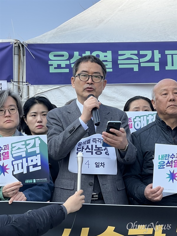 ¡ã¹ÎÁÖ»çȸ¸¦À§ÇѺ¯È£»ç¸ðÀÓ(¹Îº¯)ÀÌ 11ÀÏ ¿ÀÀü 11½Ã 30ºÐ ¼¿ï ±¤È¹® ¼½ÊÀÚ°¢ ºñ»óÇൿ °øµ¿ÀÇÀå´Ü ´Ü½Ä³ó¼ºÀå ¾Õ¿¡¼ '³»¶õ ¿ìµÎ¸Ó¸® À±¼®¿ÀÇ ½Å¼ÓÇÑ ÆÄ¸éÀ» Ã˱¸ÇÏ´Â ¹ÎÁÖ»çȸ¸¦ À§ÇÑ º¯È£»ç¸ðÀÓ ½Ã±¹¼±¾ð'À» ¿¾ú´Ù. ´Ü½Ä³ó¼º ÁßÀÎ À±º¹³² ¹Îº¯ ȸÀåÀÌ ¹ß¾ðÇϰí ÀÖ´Ù. ¨Ï À¯Áö¿µ