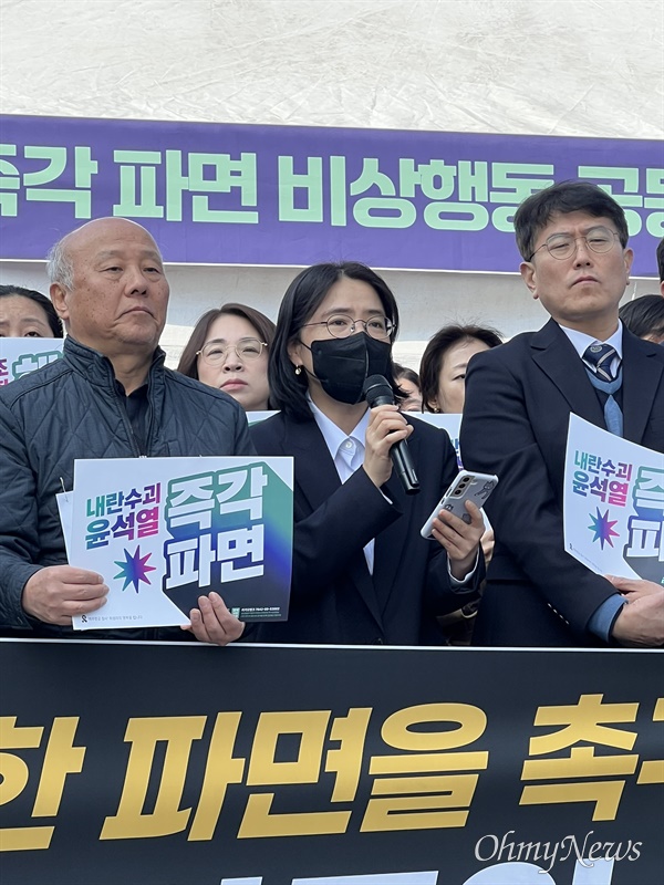 ¹ÎÁÖ»çȸ¸¦À§ÇѺ¯È£»ç¸ðÀÓ(¹Îº¯)ÀÌ 11ÀÏ ¿ÀÀü 11½Ã 30ºÐ ¼¿ï ±¤È¹® ¼½ÊÀÚ°¢ ºñ»óÇൿ °øµ¿ÀÇÀå´Ü ´Ü½Ä³ó¼ºÀå ¾Õ¿¡¼ '³»¶õ ¿ìµÎ¸Ó¸® À±¼®¿ÀÇ ½Å¼ÓÇÑ ÆÄ¸éÀ» Ã˱¸ÇÏ´Â ½Ã±¹¼±¾ð'À» ÁøÇàÇß´Ù. ³»¶õ ¿ìµÎ¸Ó¸® À±¼®¿ÀÇ ¼®¹æ »çÅ¿¡ Çå¹ýÀçÆÇ¼Ò¿¡ ½Å¼ÓÇÑ ÅºÇÙ °áÁ¤À» ¿ä±¸Çϱâ À§Çؼ´Ù.