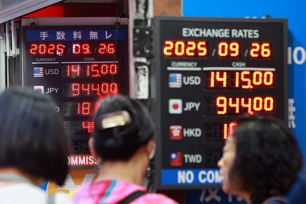 ¡ã¿ø/´Þ·¯ ȯÀ²ÀÌ ³Ë ´Þ ¸¸¿¡ Àå Áß 1410¿ø´ë±îÁö ¿Ã¶ó¼± 26ÀÏ ¼­¿ï ¸íµ¿ ½Ã³» ȯÀü¼Ò¿¡ ȯÀ²ÀÌ Ç¥½ÃµÅ ÀÖ´Ù. À̳¯ ¼­¿ï ¿Üȯ½ÃÀå¿¡¼­ ¹Ì±¹ ´Þ·¯È­ ´ëºñ ¿øÈ­ ȯÀ²Àº Àü³¯º¸´Ù 8.4¿ø ¿À¸¥ 1409.0¿øÀ¸·Î Ãâ¹ßÇÑ µÚ 1410¿øÀ» ³Ñ¾î¼¹´Ù. ÀÌ´Â Áö³­ 5¿ù 15ÀÏ(Àå Áß °í°¡ 1412.1¿ø) ÀÌÈÄ ³Ë ´Þ ¸¸¿¡ °¡Àå ³ôÀº ¼öÁØÀÌ´Ù. ¨Ï¿¬ÇÕ´º½º