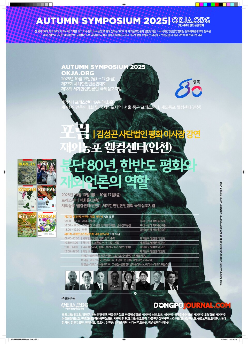 (µ¿Æ÷Àú³Î) Àü ¼¼°è Àç¿Üµ¿Æ÷ ¾ð·ÐÀεéÀÌ 2025³â 10¿ù, Çѹݵµ ÆòÈ­¿Í ÅëÀÏÀ» ÁÖÁ¦·Î ¼­¿ï¿¡ ¸ðÀδÙ. »ç´Ü¹ýÀÎ ¼¼°èÇÑÀξð·ÐÀÎÇùȸ(ȸÀå ±è¸í°ï)´Â ¿À´Â 10¿ù 13ÀϺÎÅÍ 17ÀϱîÁö 'Á¦27ȸ ¼¼°èÇÑÀξð·ÐÀδëȸ ¹× Á¦18ȸ ±¹Á¦½ÉÆ÷Áö¾ö'À» ¼­¿ï, ÀÎõ, Ãæ³² ±Ý»ê, °æ³² â¿ø µî¿¡¼­ °³ÃÖÇÑ´Ù°í ¹àÇû´Ù.