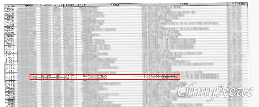 ¡ã<¿À¸¶ÀÌ´º½º>°¡ ÀÔ¼öÇÑ ½Ö¹æ¿ï ¹ýÀÎÄ«µå(³¡ÀÚ¸® 1084)ÀÇ °áÁ¦³»¿ª2023³â 5¿ù 17ÀÏ ¿ÀÈÄ 6½Ã 34ºÐ°ú 6½Ã 37ºÐ, ¼ö¿øÁö°Ë ¾Õ ÆíÀÇÁ¡¿¡¼ °¢°¢ 1¸¸ 2100¿ø°ú 1800¿øÀÌ °áÁ¦µÆ´Ù. ¨Ï ¿À¸¶ÀÌ´º½º