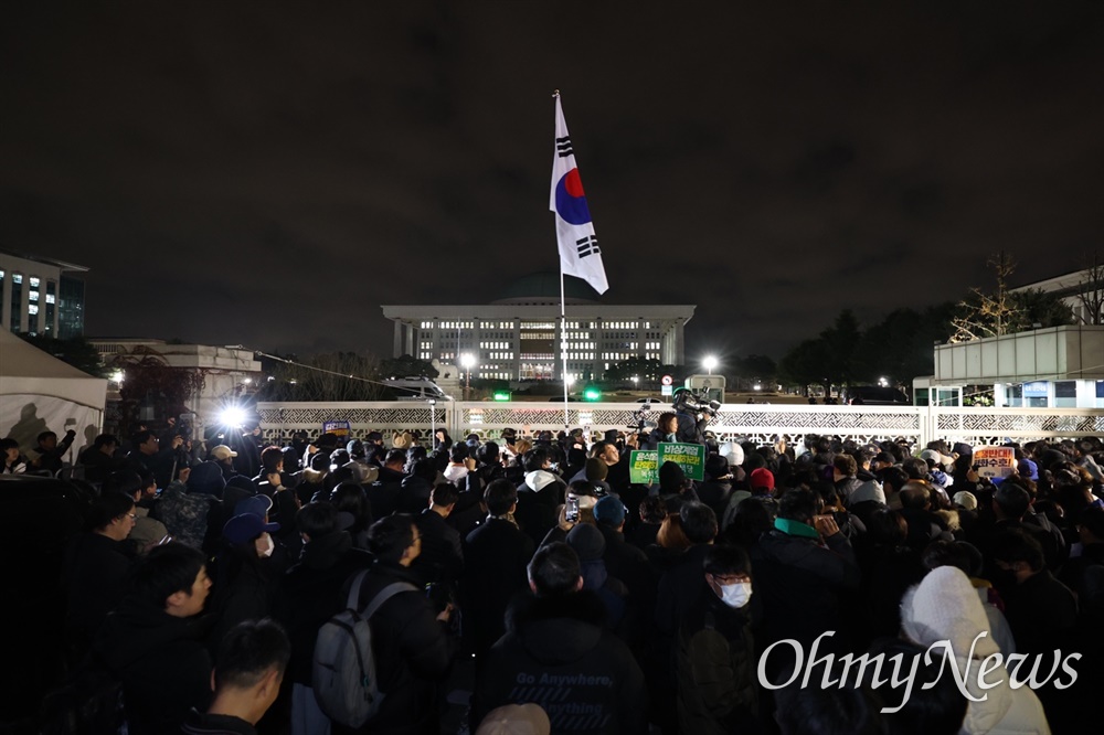 ¡ã2024³â 12¿ù 3ÀÏ À±¼®¿ ´ëÅë·ÉÀÌ ºñ»ó°è¾öÀ» ¼±Æ÷ÇßÁö¸¸, ±¹È¸°¡ ºñ»ó°è¾ö ÇØÁ¦ °áÀǾÈÀ» Åë°ú½ÃŲ ÈÄÀÇ ¸ð½À. ¼ö¸¹Àº ½Ã¹ÎµéÀÌ ±¹È¸ÀÇ»ç´ç Àαٿ¡ ¸ð¿´À¸³ª °æÂû µîÀÌ ¸·¾Æ¼°í ÀÖ´Ù. ¨Ï±Ç¿ì¼º