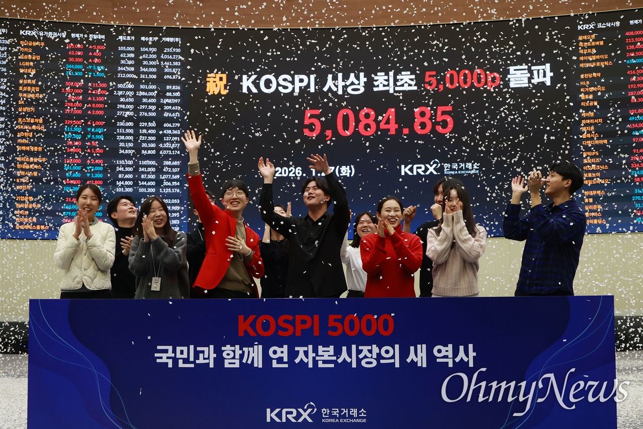 ¡ãÁö³ 1¿ù 27ÀÏ ¿ÀÈÄ ¼¿ï ¿µµîÆ÷±¸ ¿©Àǵµ Çѱ¹°Å·¡¼Ò ¼¿ï»ç¿Á¿¡¼ ¡®ÄÚ½ºÇÇ 5000p(Á¾°¡ ±âÁØ) µ¹ÆÄ¡¯¸¦ ÃàÇÏÇϸç Á÷¿øµéÀÌ ÃàÇÏÇà»ç¸¦ Çϰí ÀÖ´Ù. ¨Ï±Ç¿ì¼º