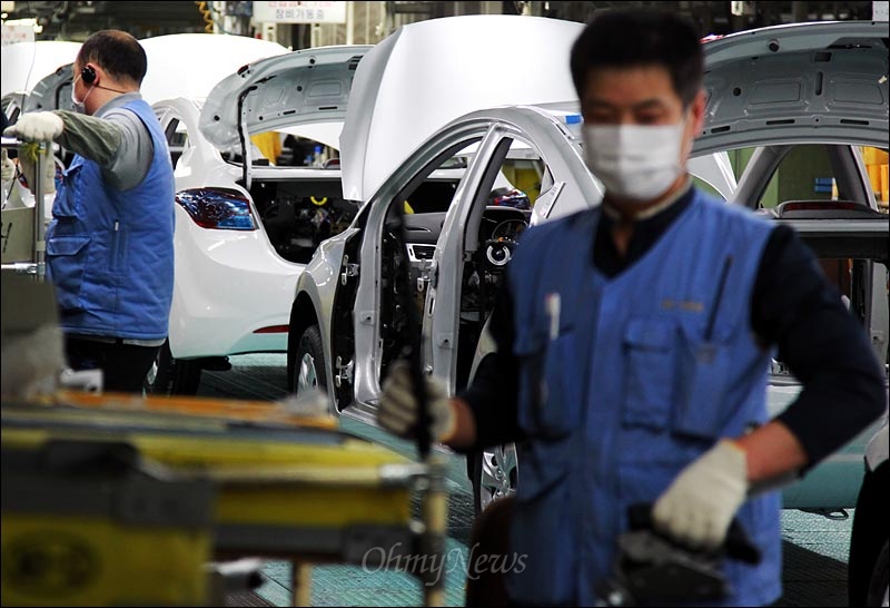 ¡ãÇö´ëÀÚµ¿Â÷ ¿ï»ê°øÀå ½Â¿ëÂ÷ »ý»ê¶óÀο¡¼ ³ëµ¿ÀÚµéÀÌ ºÎǰ Á¶¸³ ÀÛ¾÷À» Çϰí ÀÖ´Â ¸ð½À. ¨Ï(ÀÚ·á»çÁø)±Ç¿ì¼º